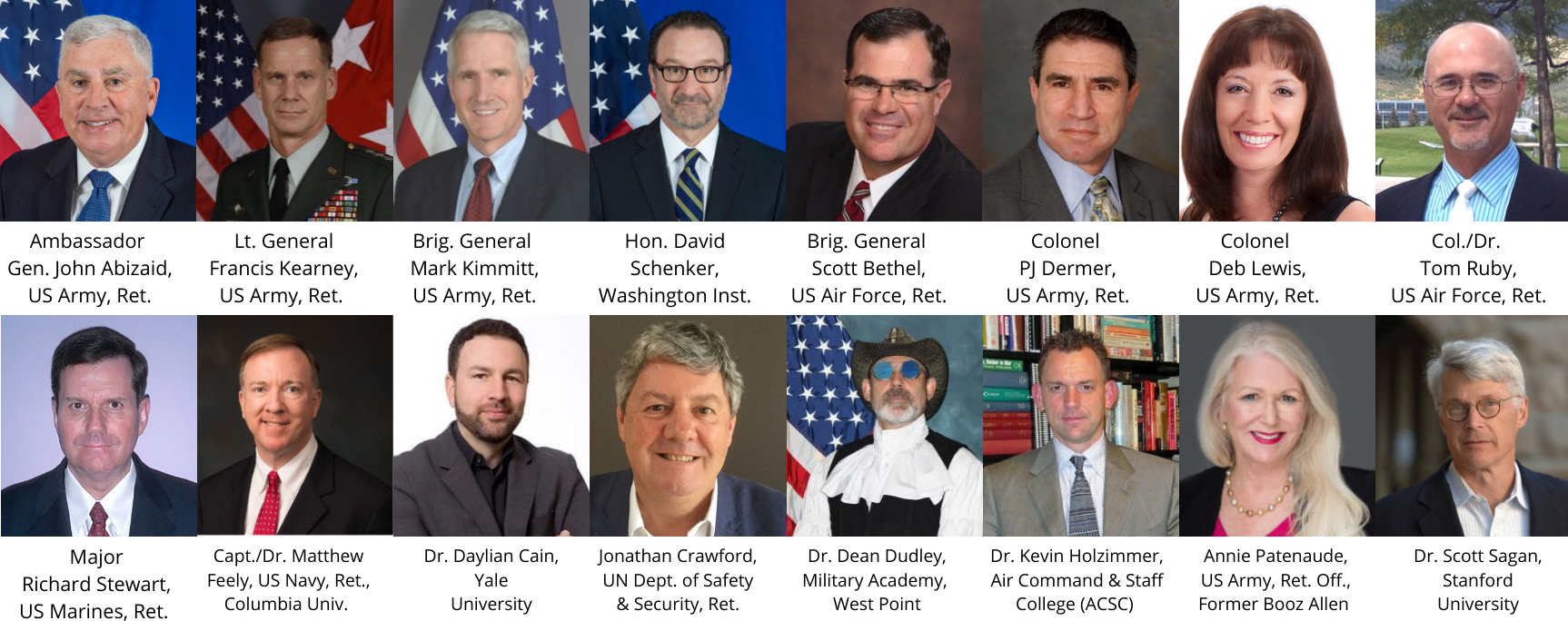 Scott Bethel, Brigadier General, USAF (Ret.); Founder and CEO of IntegrityISR; Former Vice Commander, Air Force ISR Agency (AFISRA); Former Senior Drone Operations Director and Analyst and the Air Force's Senior Targeteer; Former Commander for the Training of All DoD Intelligence Personnel; Master’s Degree in Strategic Intelligence from the Defense Intelligence College. [ISR: Intelligence, Surveillance, and Reconnaissance]